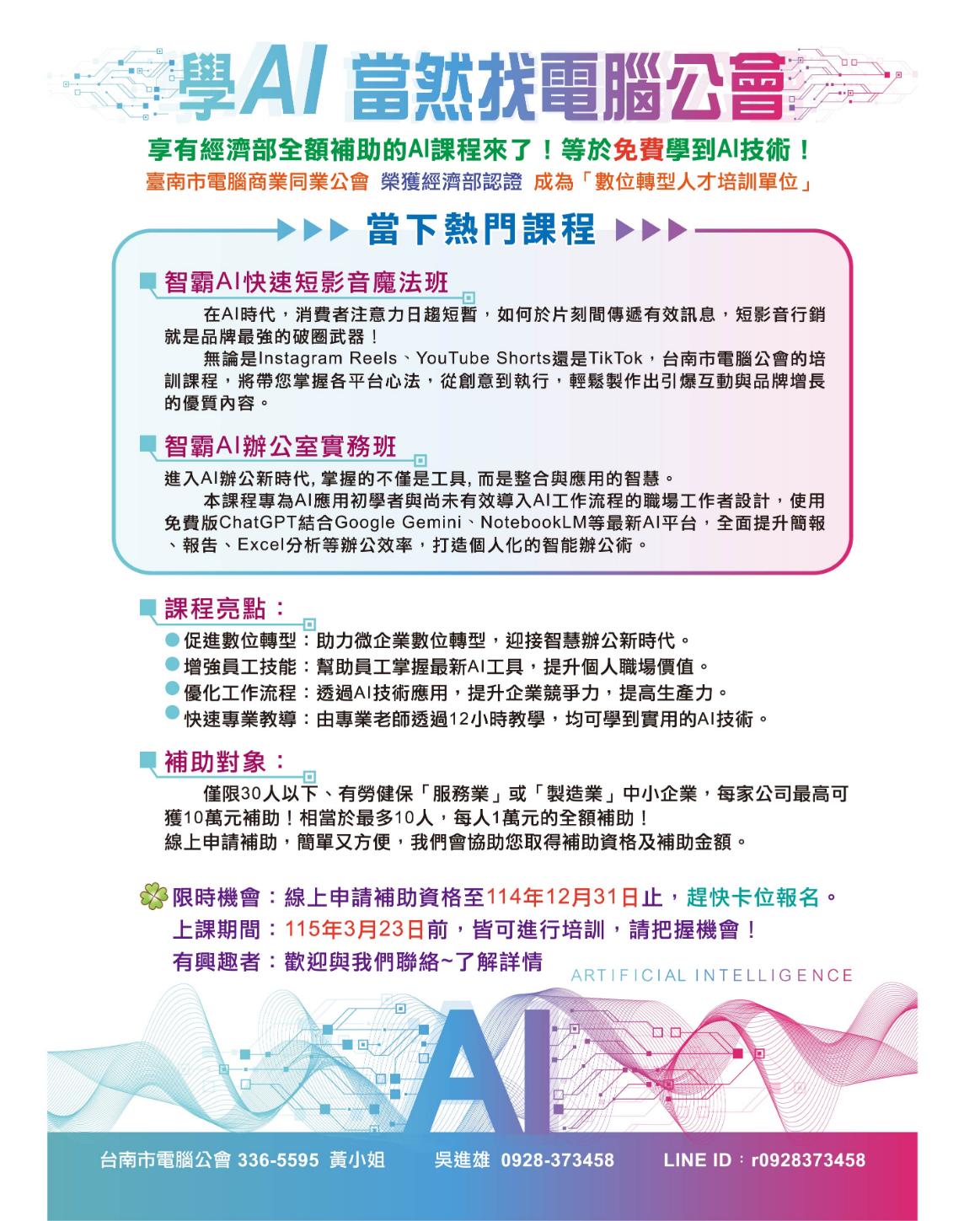 2025年12月 至 2026年3月 課程日期「企業包班,時間與地點均可彈性安排」