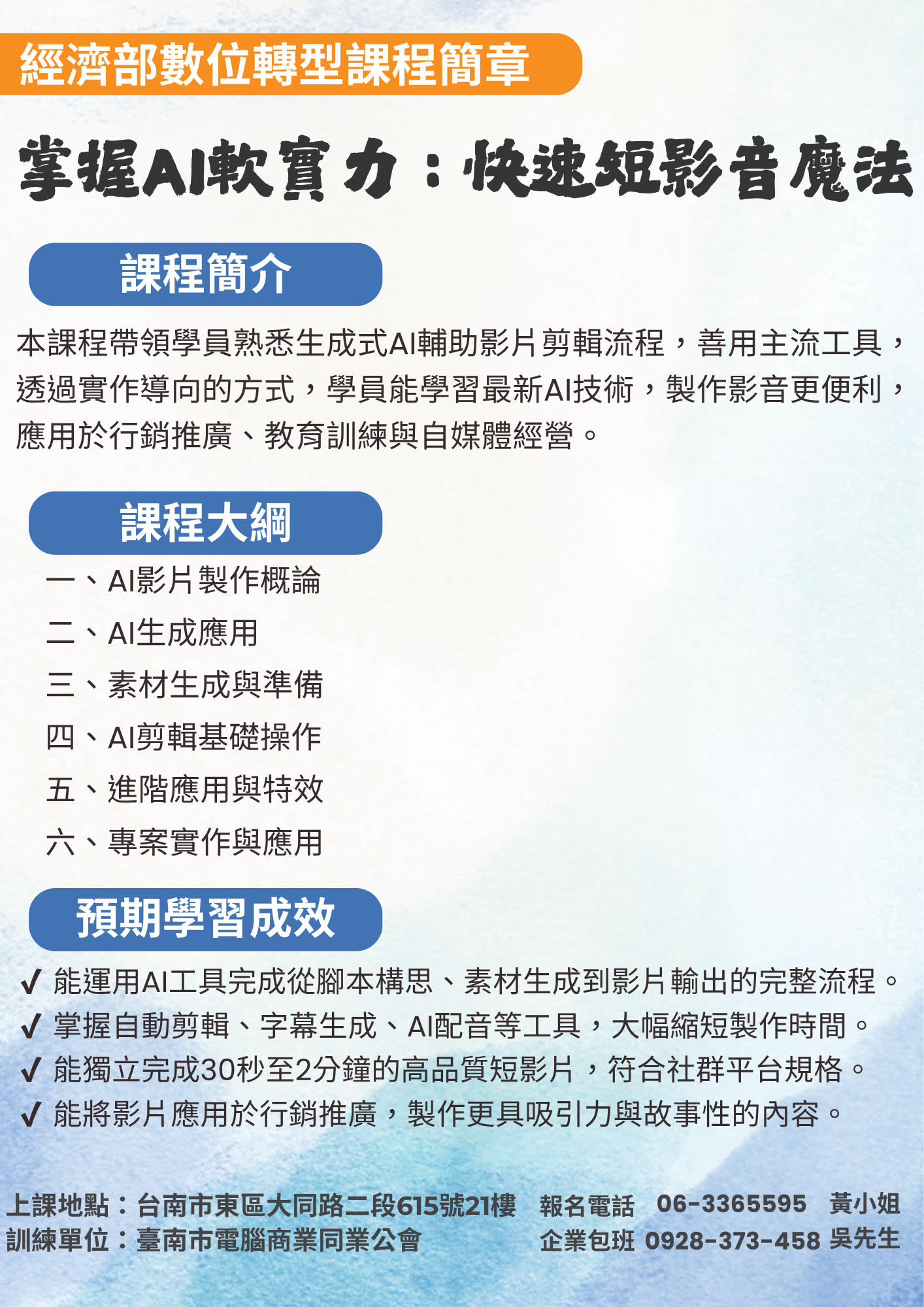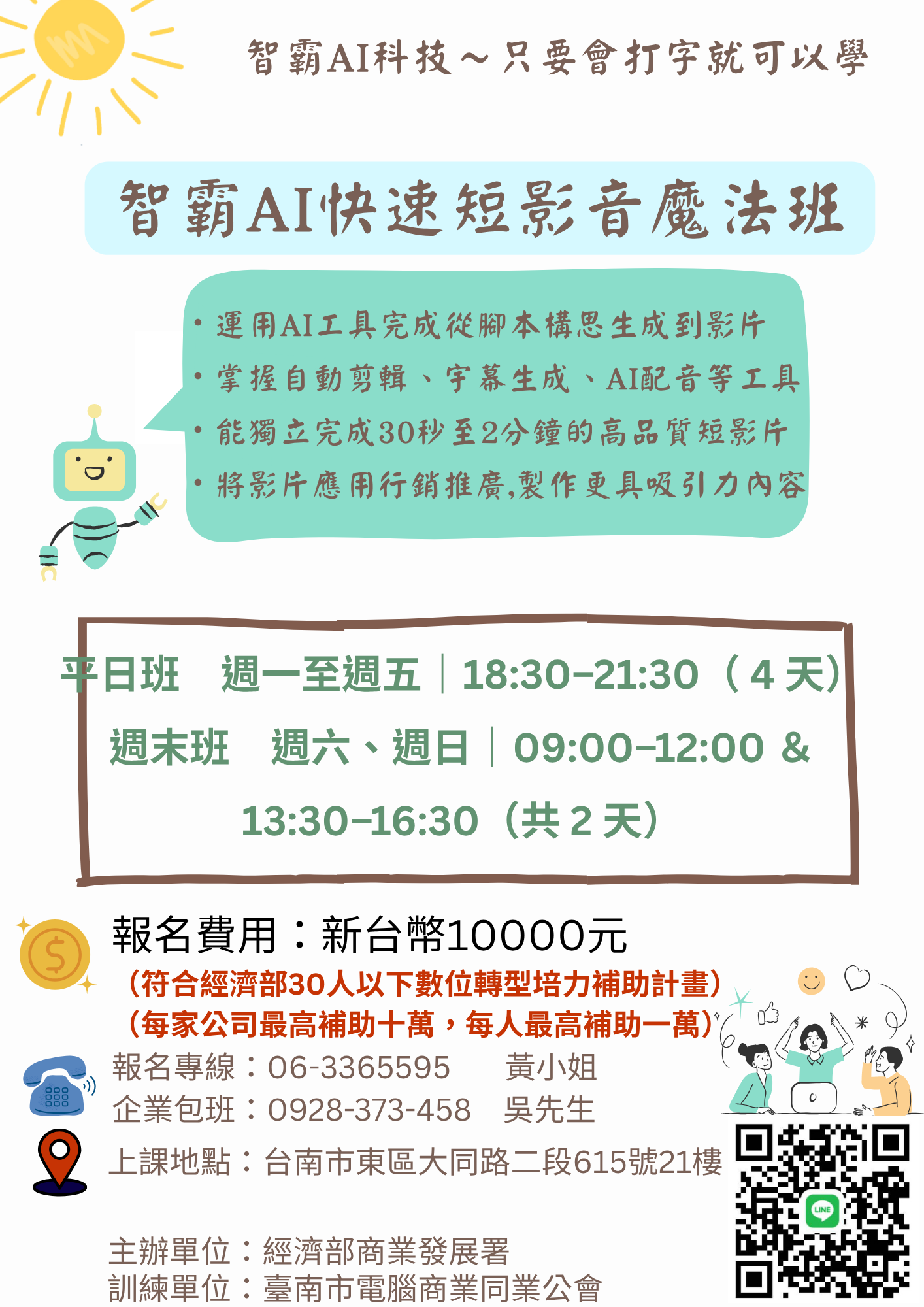 【課程費用】:$10000(每家企業最高補助十萬,每位員工最高補助一萬)