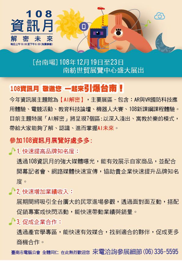 台南市電腦公會招商專線:(06)336-5595