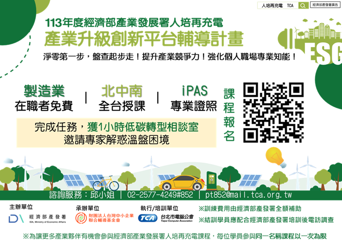 ü 製造業低碳化精修C班:9/13(五,台北)
