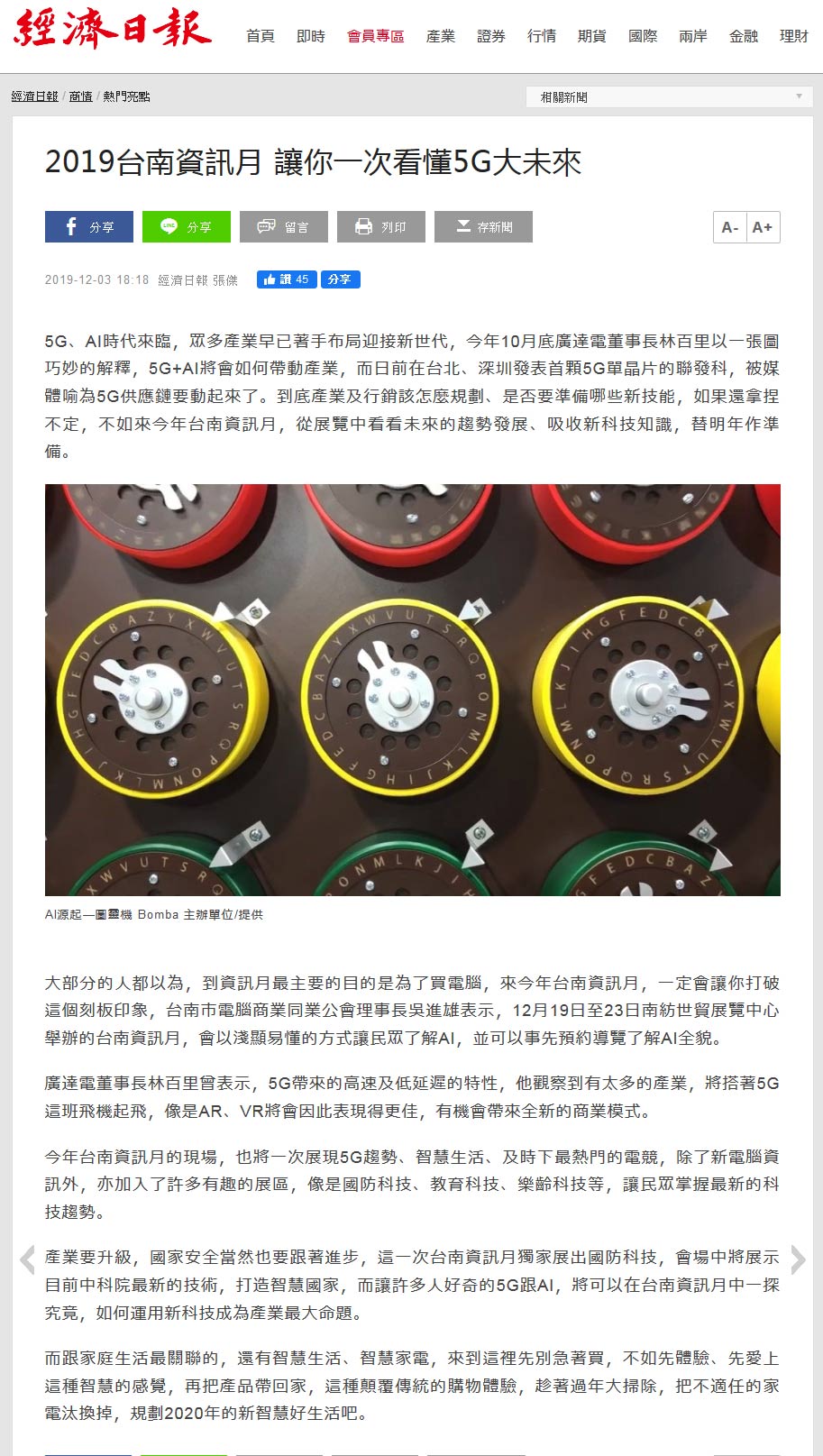 經濟日報-108台南資訊月 讓你一次看懂5G大未來