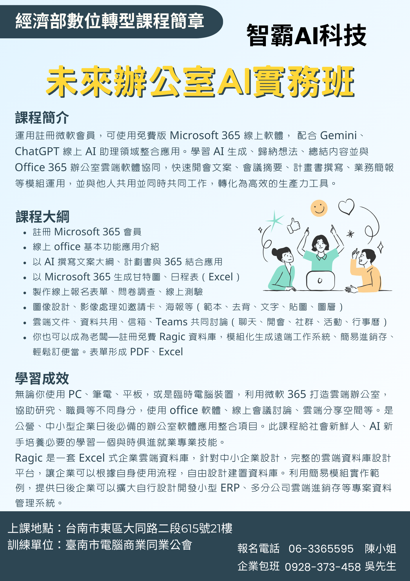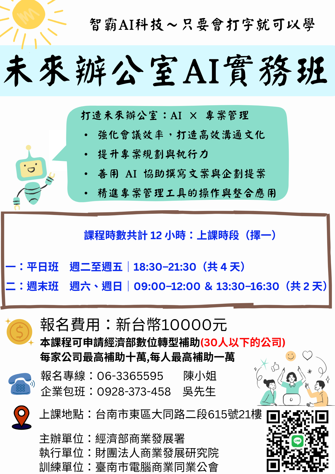 【課程費用】:$10000(每家企業最高補助十萬,每位員工最高補助一萬)