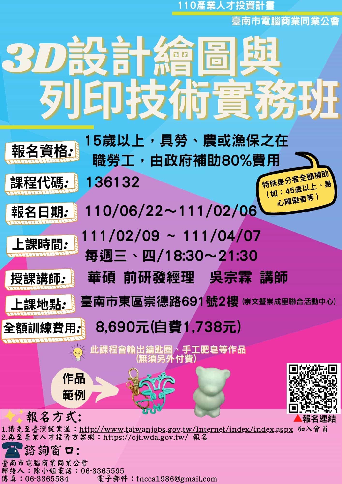 熱門課程【3D設計繪圖與列印技術實務班】開班囉!