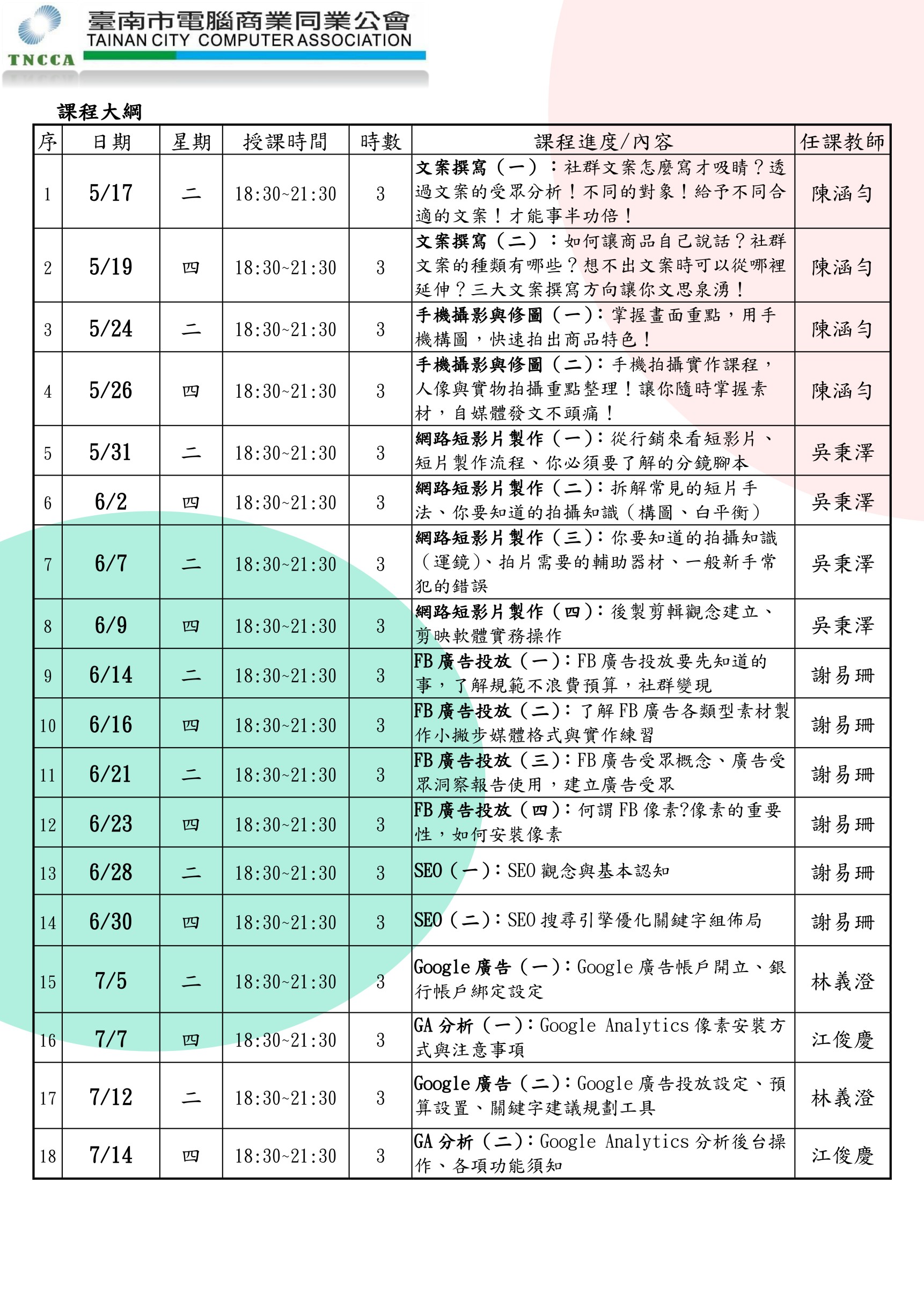 ►上課地點:臺南市東區大同路2段615號21樓(會議室)