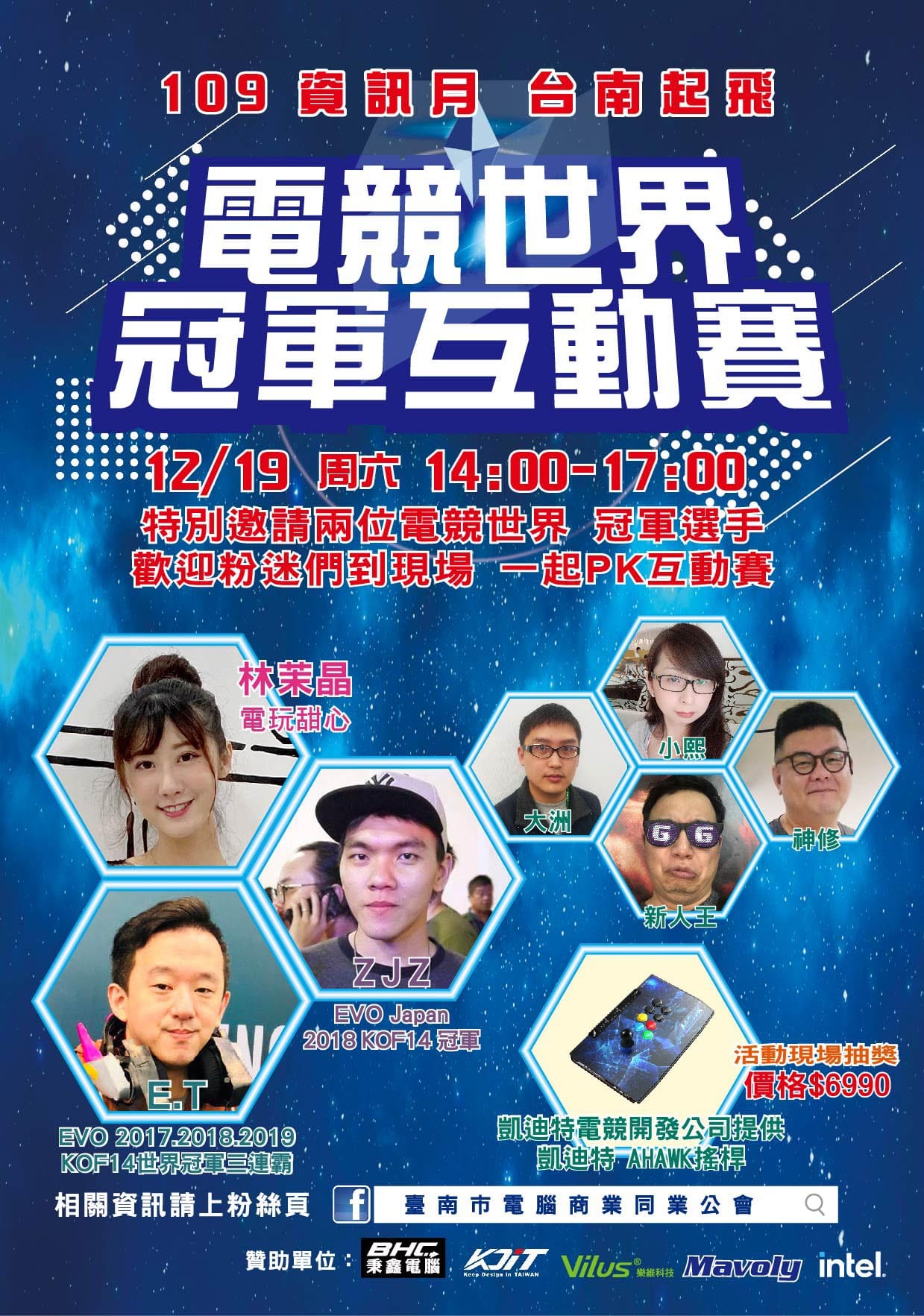 109台南資訊月為電競科技迷們再次邀請兩位世界級冠軍選手《ET》、《ZjZ》來到活動現場,還有大家最愛的電玩甜心《林茉晶》,以及四位選手《大洲》、《小熙》、《神修》、《新人王》,與各位電競粉絲好友們來場互動大賽。活動當天擠得水洩不通,南部科技迷直呼「有台南資訊月真的太棒了!」