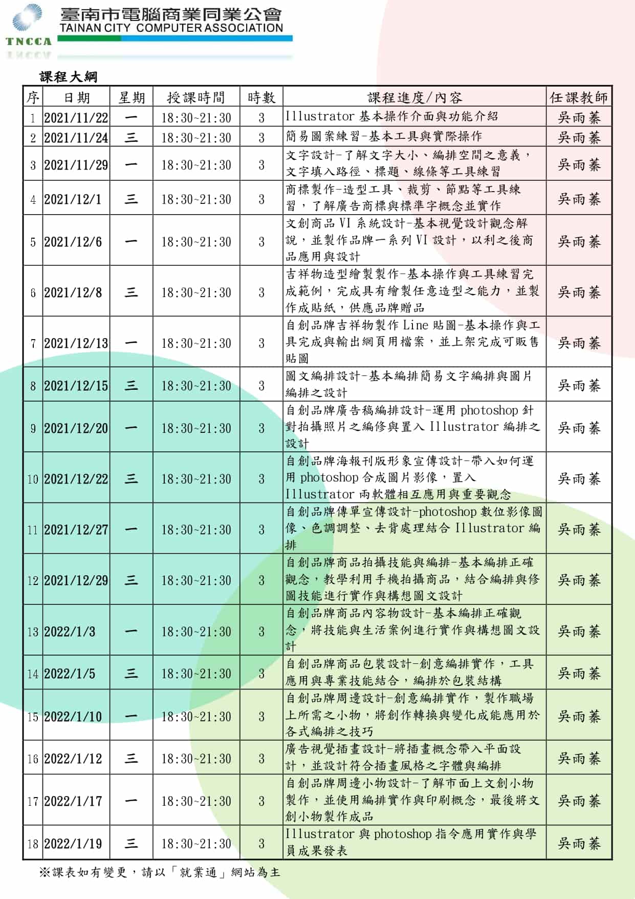 ►上課日期:110/11/22~111/01/19