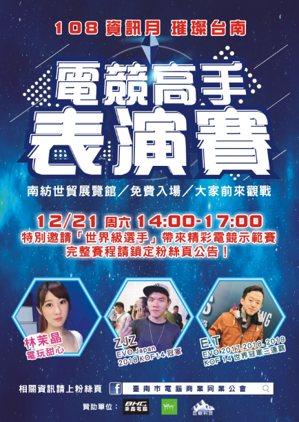 時間:12月21日(六)14:00-17:00 地點:南紡世貿中心(仁德區義林路77號) 表演場地:資訊月主舞台區