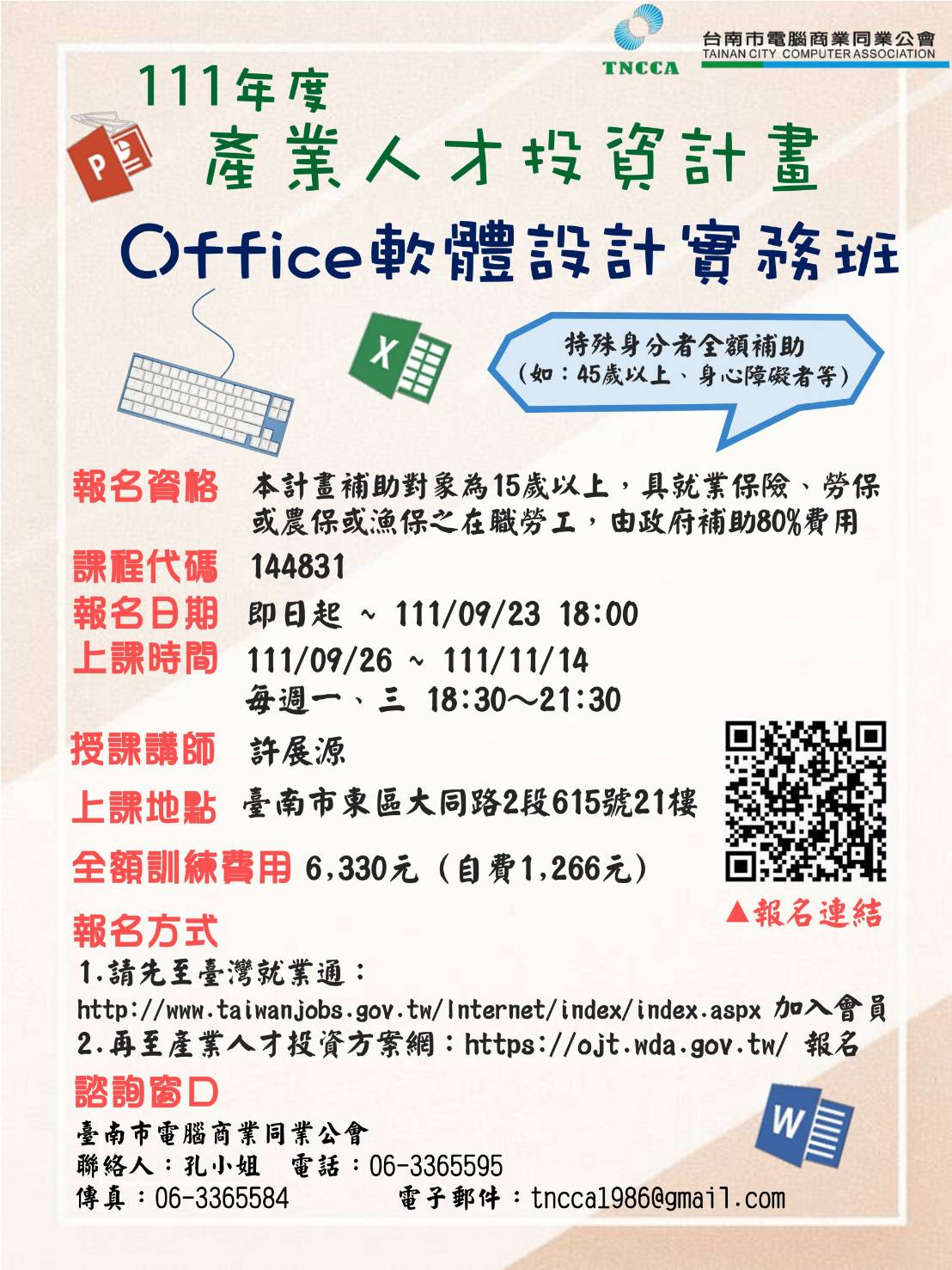 ●如補助生名額已滿,歡迎報名「自費生」參訓,優惠費用請來電洽詢。