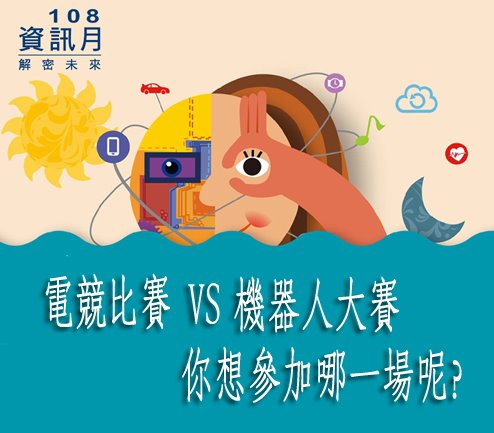 機器人大賽:舞台區將舉辦「智慧機器人闖關挑戰」及「廢柴機器人競賽」,歡迎家有國小年紀的孩子們,密切注意比賽報名方式!